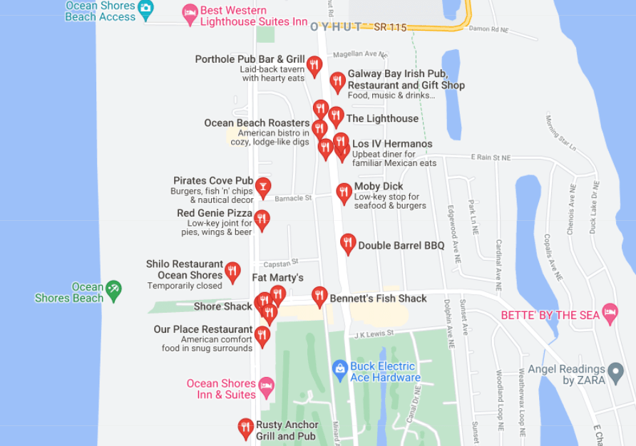 1. Los 4 Hermanos and Porthole Pub in the north end, Oyhut Bay Bistro in the south.