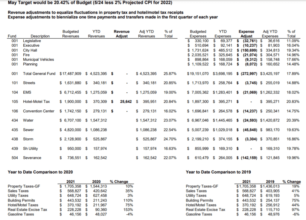 With departments UNDER budget and revenues OVER projections, Ocean Shores is off to a powerhouse financial year. The city is tracking and racking, according to the most recently available May 2021 financial report — which doesn’t include what may be a record-shattering June and July. True, this also doesn’t include a likely $1 million “hit” with the former OS fire chief’s lawsuit …