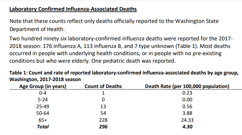 Facebook commenter: “What I’d like to know is let’s say 3 years ago, what was the percentage of people who had the flu and how many were hospitalized and how many died.” Answer: