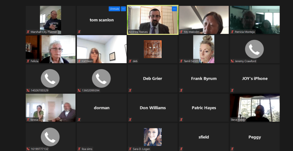Conditional Use Permit hearing going on now here. After a brief introduction, it’s been one neighbor after another raising concerns about parking, trees getting knocked down, confusion on zoning, three-homes-on-one-lot and the height! Not to mention … future implications …